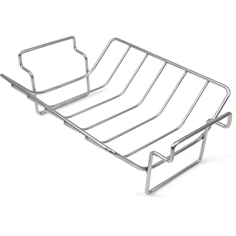The Big Green Egg dual purpose, stainless steel Rib and Roast Racks can be used upright to hold roasts and poultry or can be flipped over to serve as an efficient rib rack.