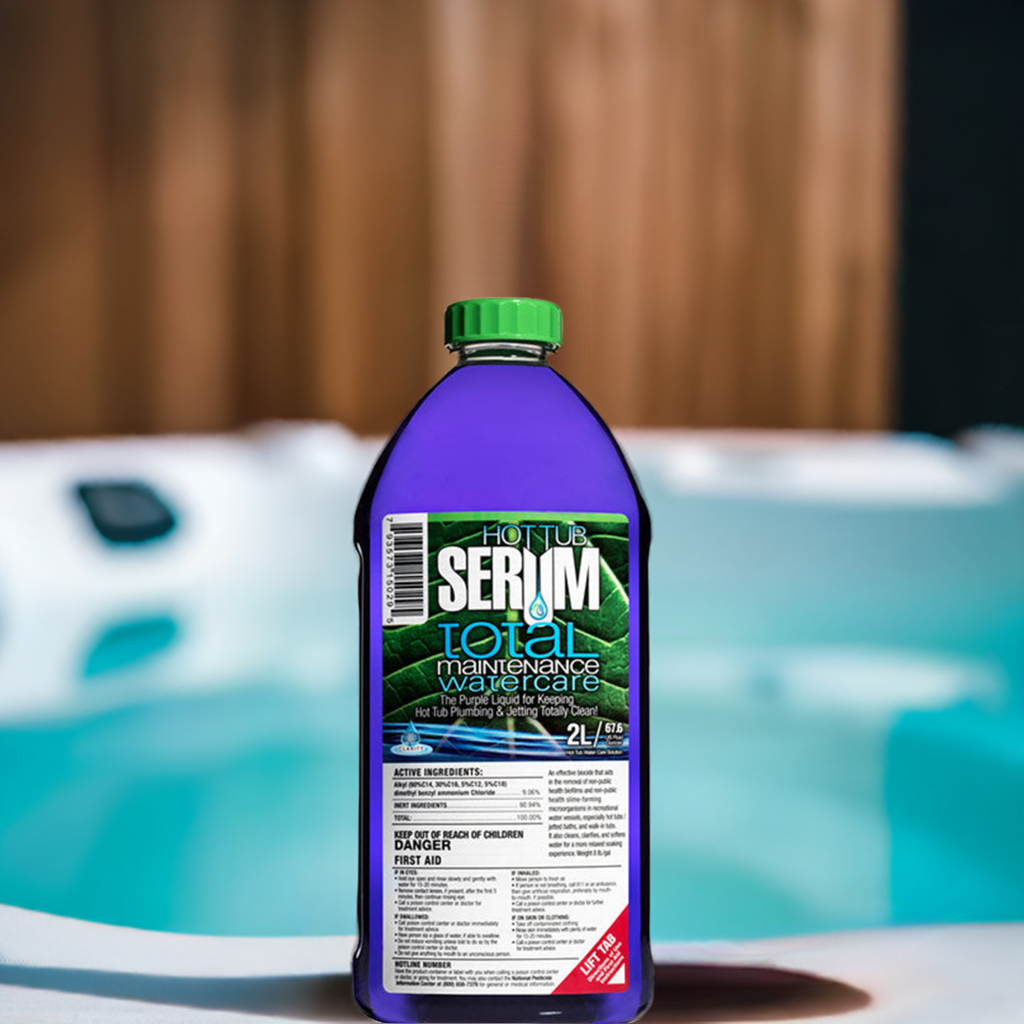 Hot Tub SERUM Maintenance liquid is an EPA registered bio film removal product. It is the only product in the spa industry that aids in the removal of bio-film according to the EPA. It is designed as a weekly addition to your customers sanitization regiment. The use Hot Tub SERUM Maintenance helps to destroy the bacteria that your customers current sanitizer can’t. It reaches down deep into the plumbing of the spa to help prevent the recurring buildup of sludge and bio-films that plagues every hot tub. The weekly use of Hot Tub SERUM Maintenance will also help to keep the water in the spa crystal clear, soft and clean.